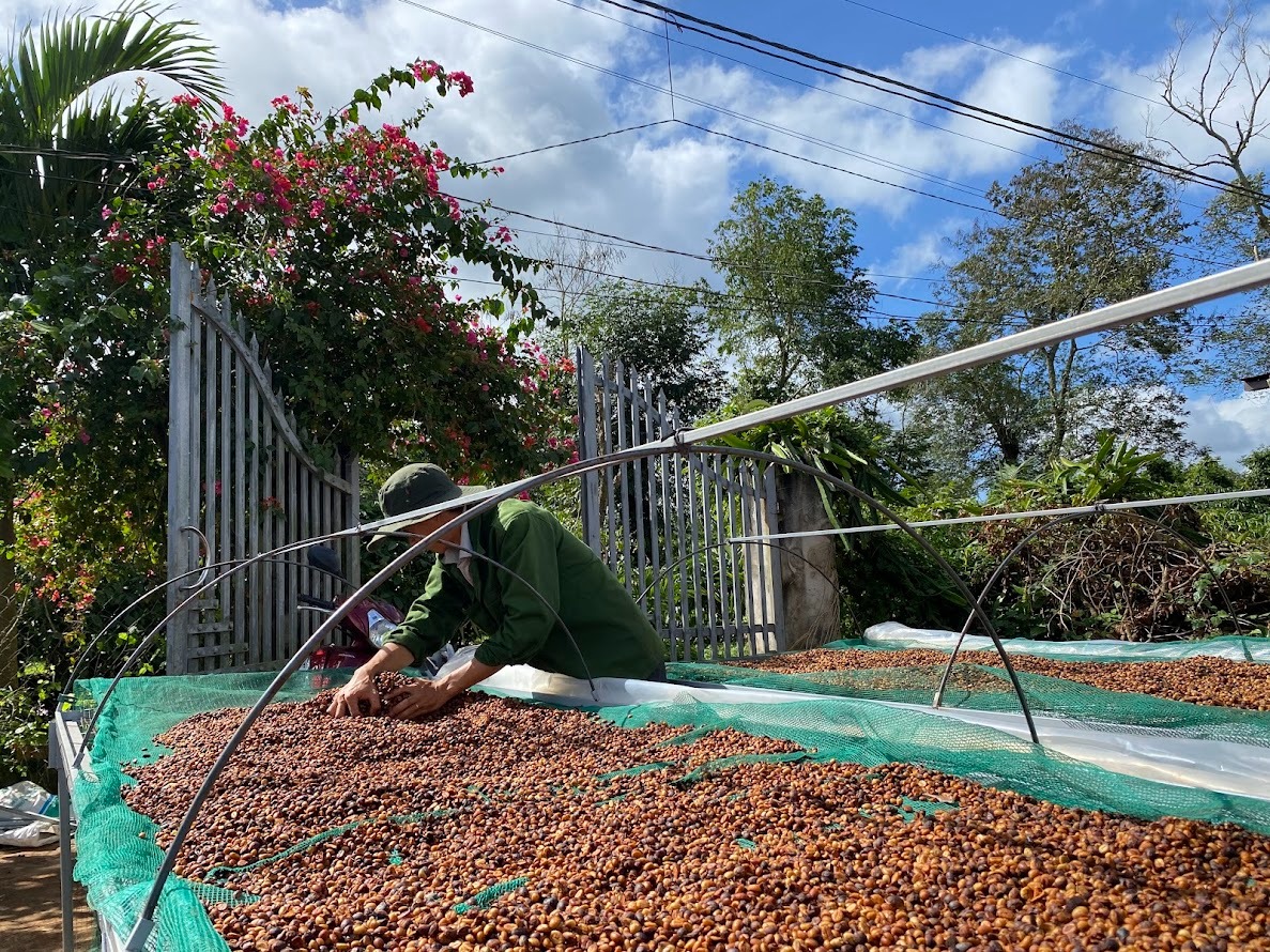 Từ đó, trên sân phơi có một nguyên tắc đơn giản: thà phơi ít, phơi mỏng, còn hơn phơi nhiều mà phơi dày, dễ bị đánh đổi cả mẻ cà phê đã kỳ công hái chín.