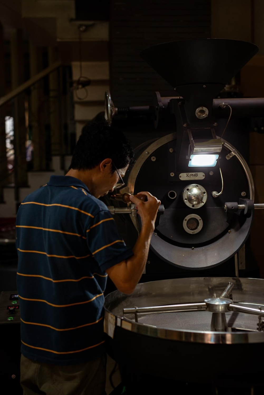 Rang cà phê cũng không phải việc của máy móc. Thực chất, đó là công việc đòi hỏi người thợ rang phải trầm tĩnh hơn bao giờ hết. Người thợ rang không điều khiển hương vị bằng mệnh lệnh trên bảng điều khiển, mà bằng việc lắng nghe và cảm nhận Nghe tiếng hạt trong lồng rang, nhìn màu hạt đổi dần và cảm nhận mùi hương thay đổi theo từng giai đoạn.