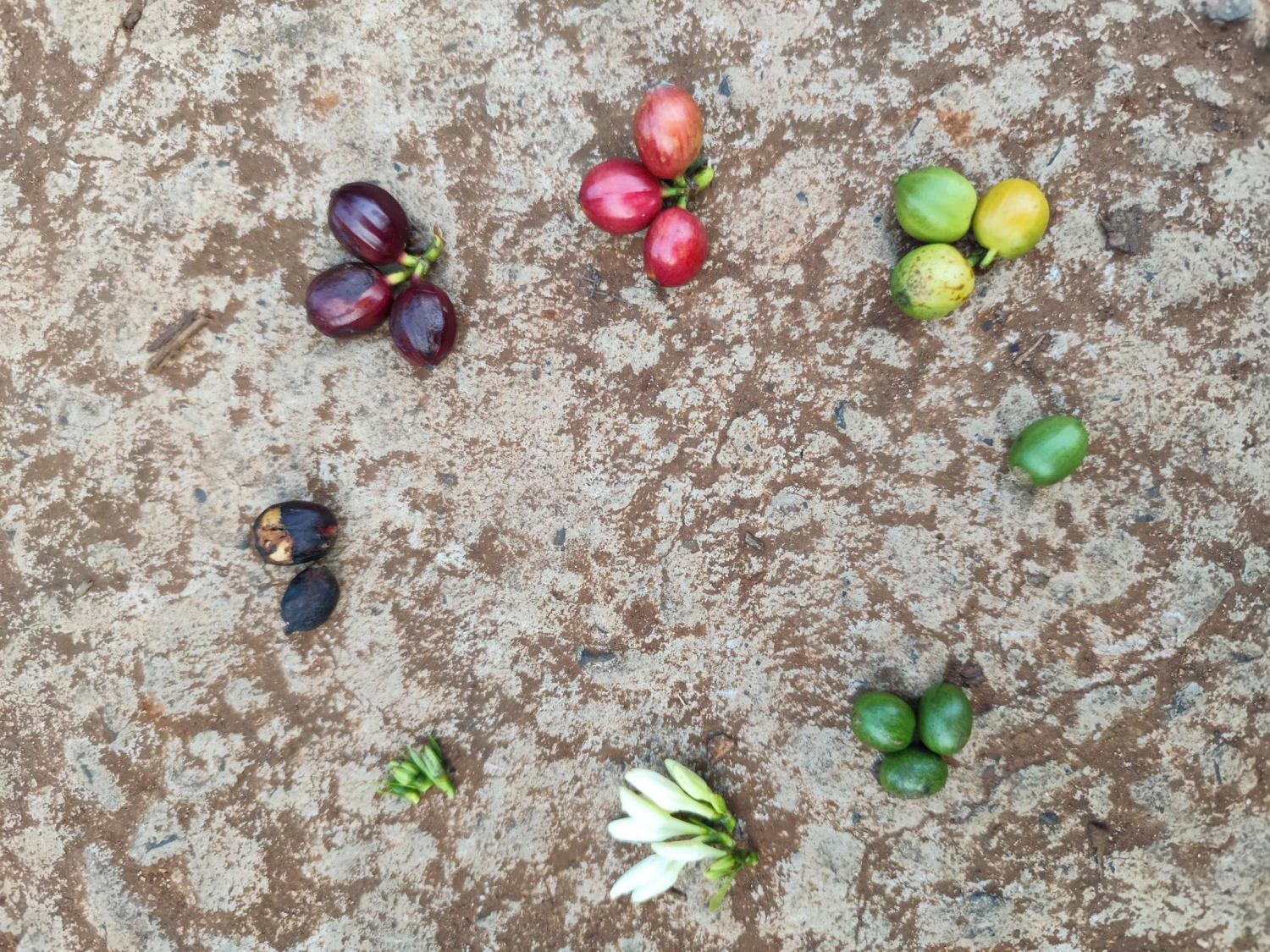Khi hoa rụng, trái nhỏ chào đời. Hoa rời khỏi cành, để lại những chấm xanh bé xíu. Những trái cà phê nhỏ màu xanh nhạt. Đây là giai đoạn cây cà phê cần dưỡng chất, nước và bóng râm phù hợp. Bất kỳ tác động mạnh tay nào như: bón phân quá đà, phun thuốc hóa học đều có thể ảnh hưởng đến chất lượng hạt sau này.